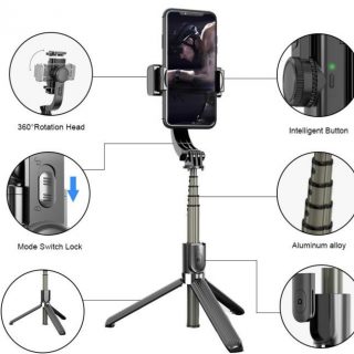 R1,100.00R799.00Add to cartAutomatic Balanced Gimbal Stabilizer – The Pan-tilt stabilizer automatically finds the balance position to ensure that the phone remains stable while moving, regardless of whether the phone screen is horizontal or vertical. Comfortable to handheld, it can Extendable with 4 sections aluminum alloy sticks, ABS + Rubber phone clamp keeps the device more stable. Plus, it helps the anti-slip effect of the tripod legs.