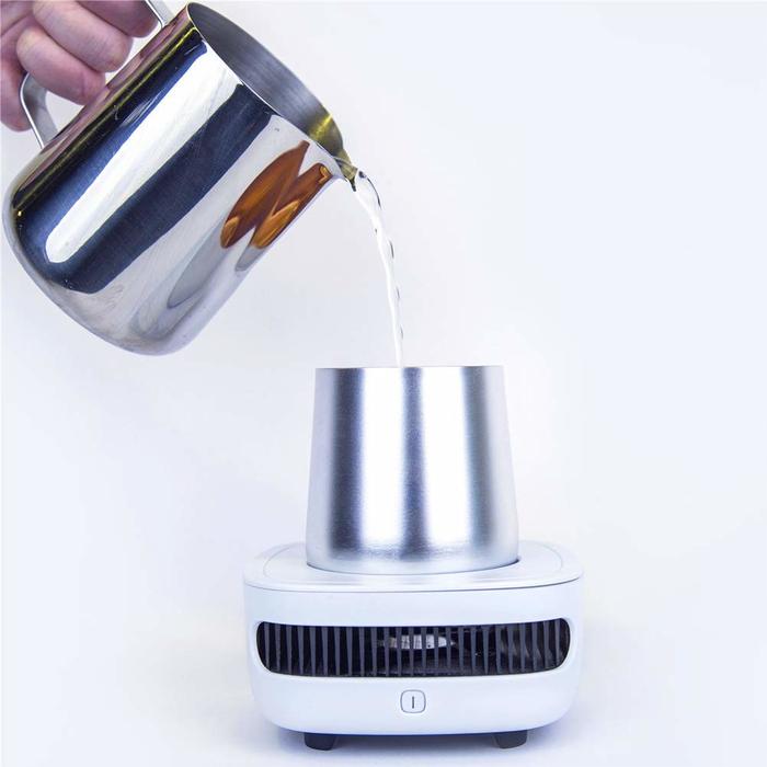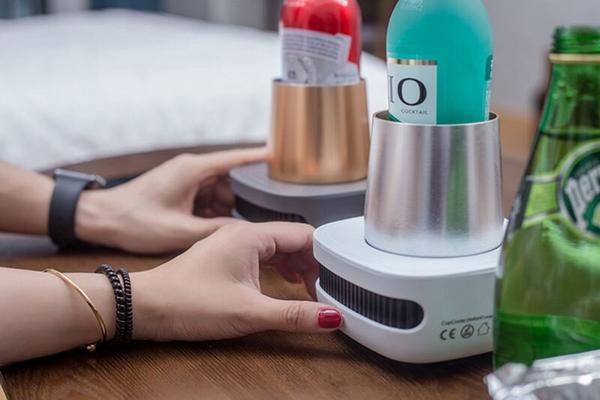 Simply plug it in, put your beverage on the device, and it turns it into a satisfying cold drink